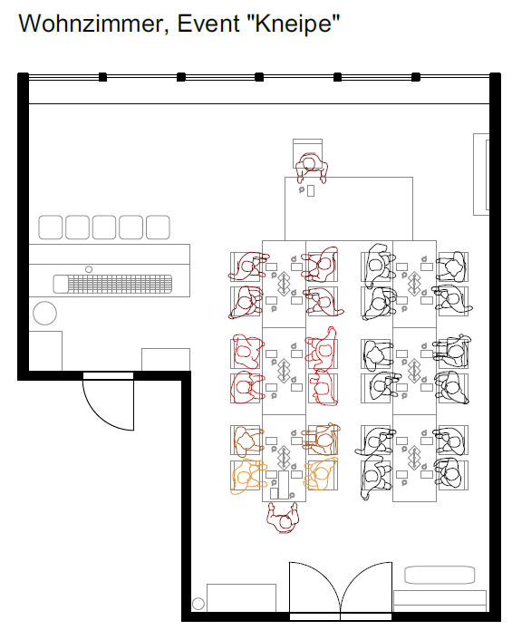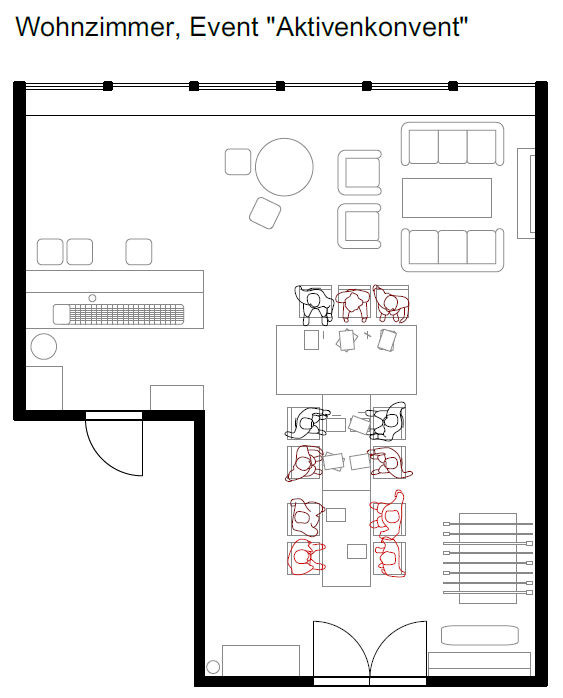 Im Erdgeschoss befindet sich das Herzstück des Hauses: der Kneipsaal. Der Kneipsaal einer Studentenverbindung ist der Saal, in dem die traditionellen Verbindungsanlässe stattfinden. Außerhalb dieser Veranstaltungen wurde der Kneipsaal als Wohnzimmer genutzt. Reichlich geschmückt mit farbentragenden, repräsentativen Gegenständen und einem viel genutzten Zapfhahn, ist es jedoch kein gewöhnliches Wohnzimmer.